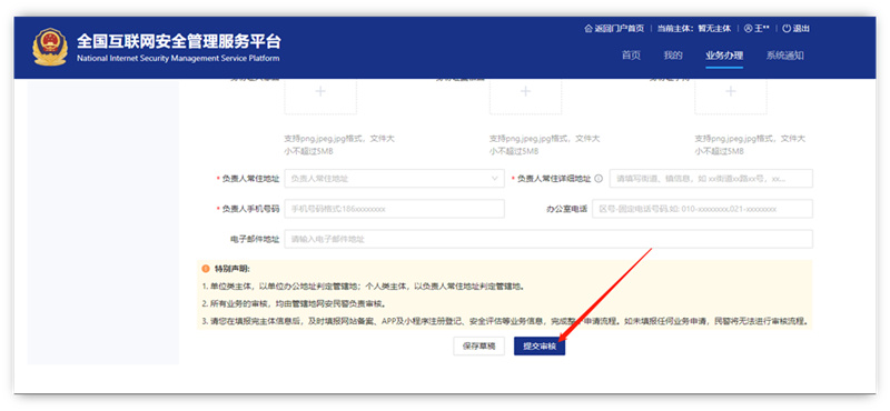 存在审核记录后等待系统审核,大概5-8个工作日,通过后系统上会显示通过,填写手机的联系人会收到公安备案通过的短信提醒。