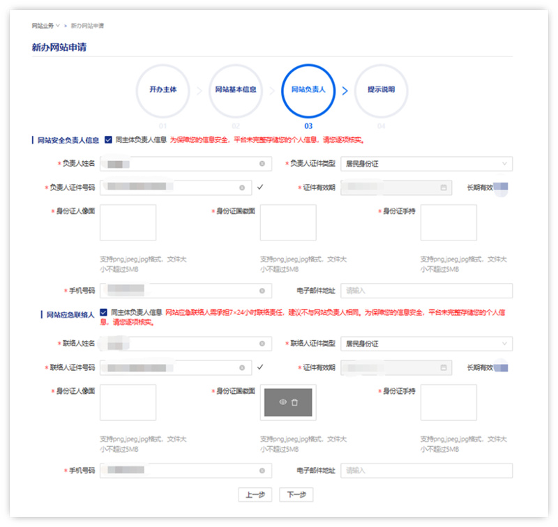 法人主体:请在邮件附件中上传网站或主体负责人身份证正反面照片